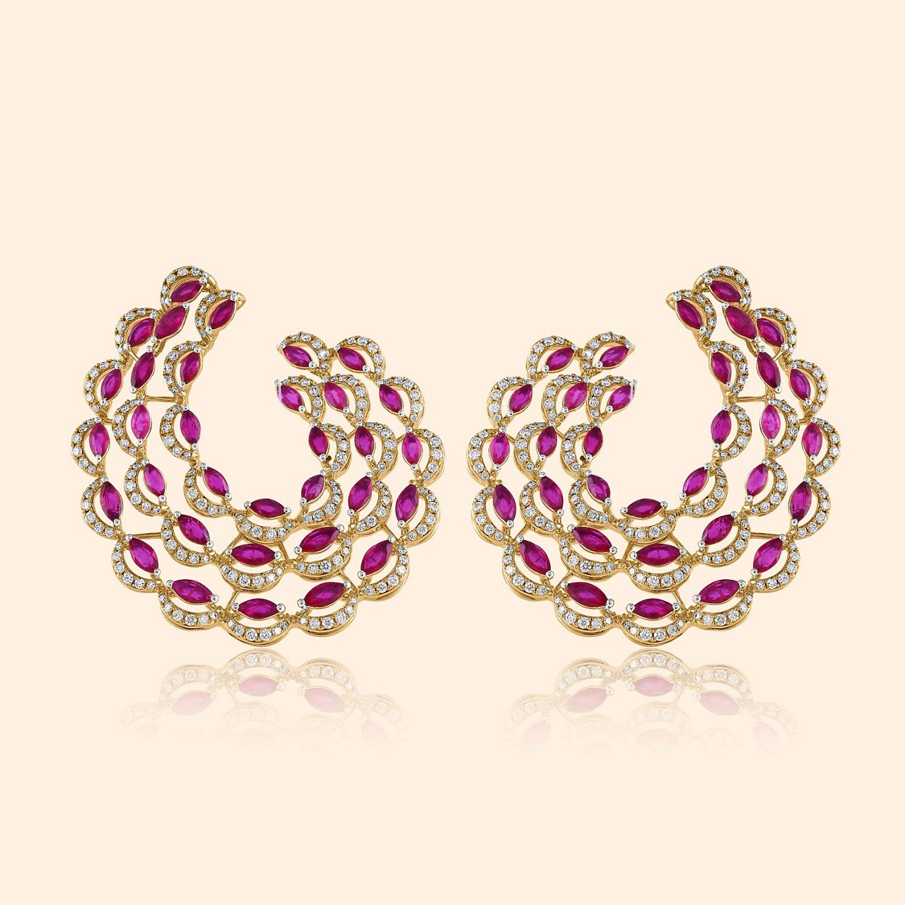 Festive pre-wedding events invite playfulness. Opt for lightweight sangeet or mehndi jewellery in vibrant tones. Look for accents of delicate stones or pearls. Think breezy gold earrings and dainty diamond bangles that allow effortless dancing.