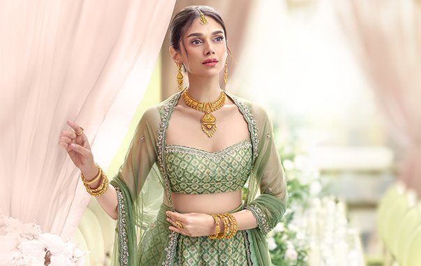 Recommended Pieces: Multi-layered gold bangles, nature-inspired leaf motif pieces