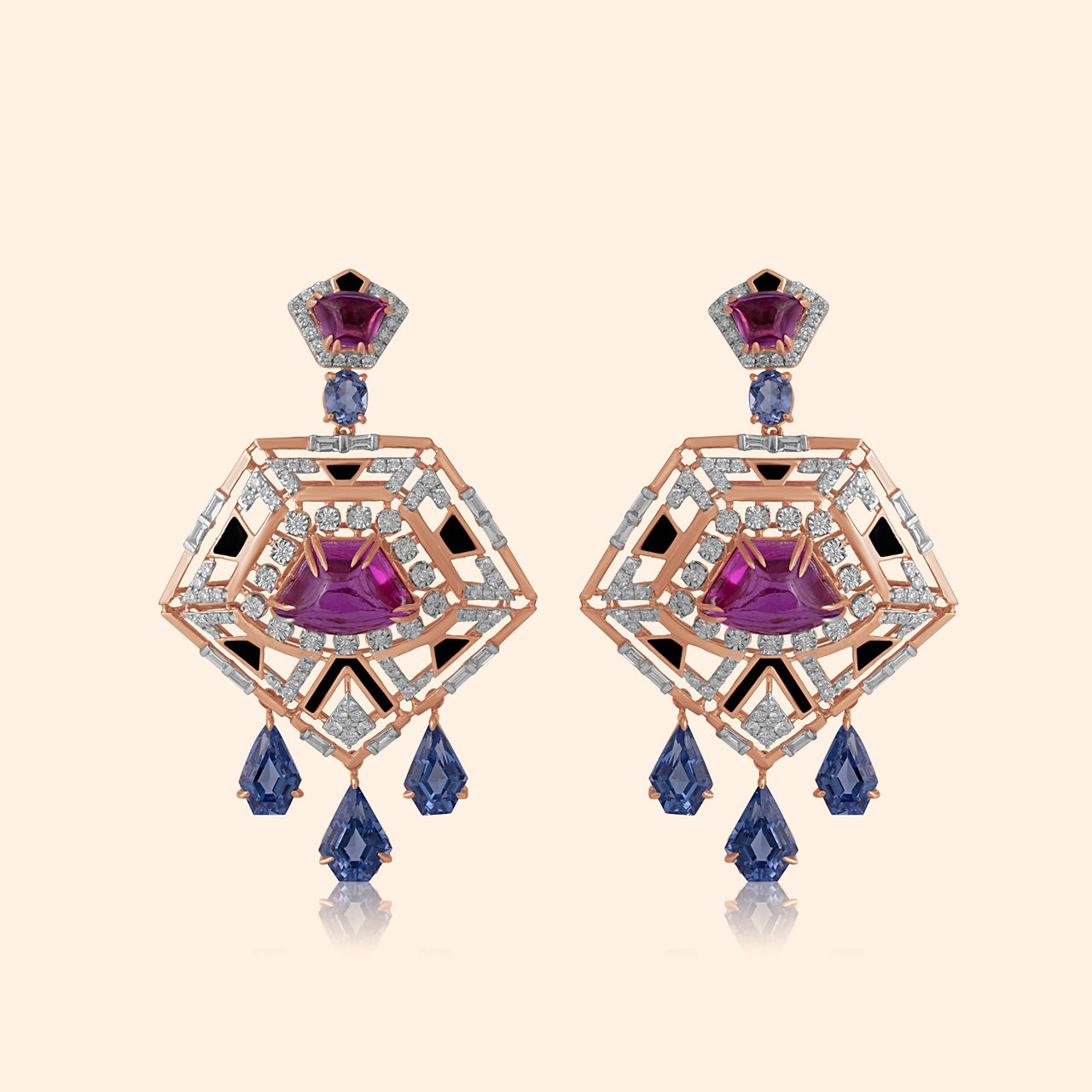 Sky's embrace, a touch of whimsy, dreams take a leap, a boundless flight. A whisper of the celestial sky adorns your neck, the Akasha Necklace. Delicate blue stones dance along a fine 18kt gold chain, leading to a detachable pentagonal pendant. The pendant, crafted in gold with shimmering pink details, captures the essence of boundless possibility. Tiny blue hangings add a touch of whimsy, making this necklace a captivating conversation starter. Wear it as a reminder to embrace the vastness of your dreams.