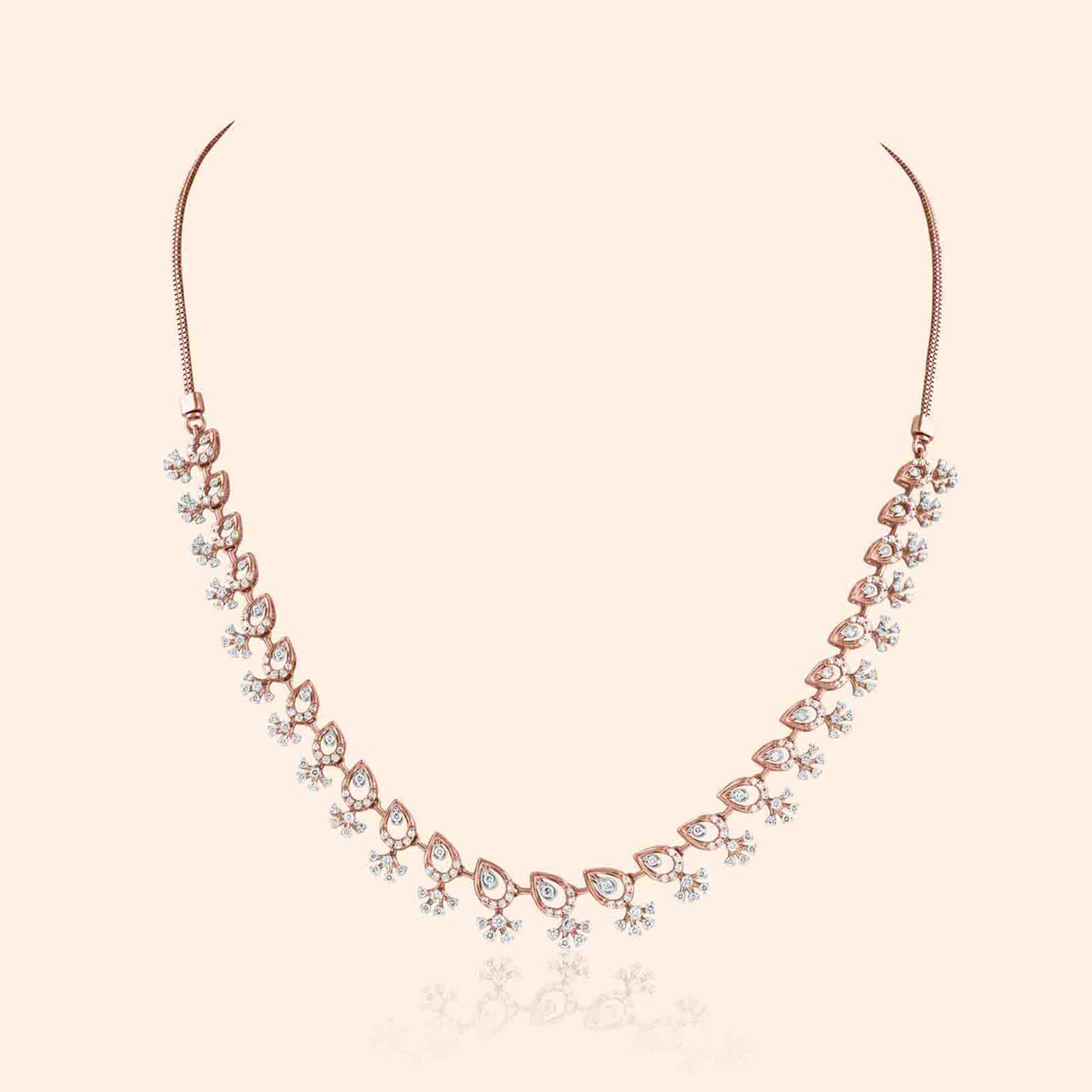 Exquisitely crafted in 14KT rose gold, these drop earrings celebrate modern floral elegance with refined detailing. Finely set diamonds accentuate the intricate petal motifs, enhancing the high finish of the gold with subtle radiance. Designed as elevated essentials, the earrings balance contemporary sophistication with versatile wearability, making them suitable for light occasions. A harmonious blend of artistry and structure, this pair reflects meticulous craftsmanship, offering a timeless expression of elegance and understated charm that complements any ensemble.