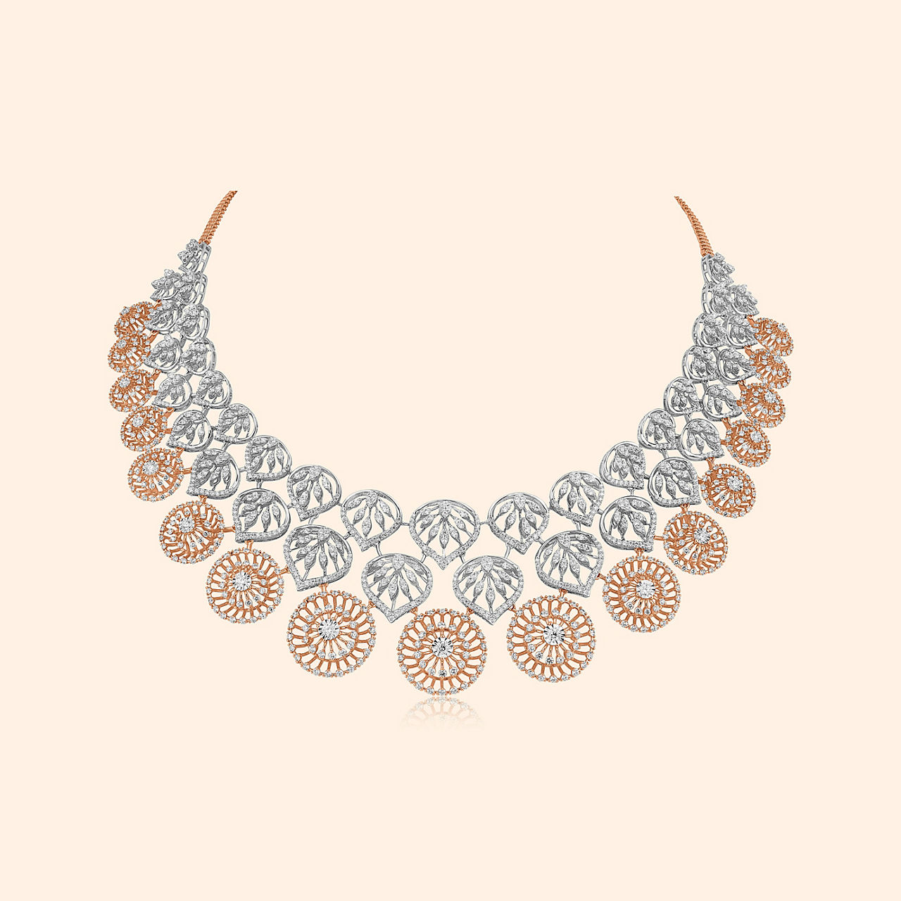 Symmetry of light, crafted with care, Anayat Diamond Drop Earrings dazzle. Designed in 18KT white and rose gold, these drops feature diamonds in a bold geometric pattern. Their high-polish finish creates an irresistible brilliance, ideal for heavy occasion wear. Anayat Diamond Drop Earrings merge tradition with modern aesthetics, offering a radiant expression of beauty. They highlight the wearer’s grace while becoming timeless adornments that reflect beauty, artistry, and cultural grandeur in every detail.