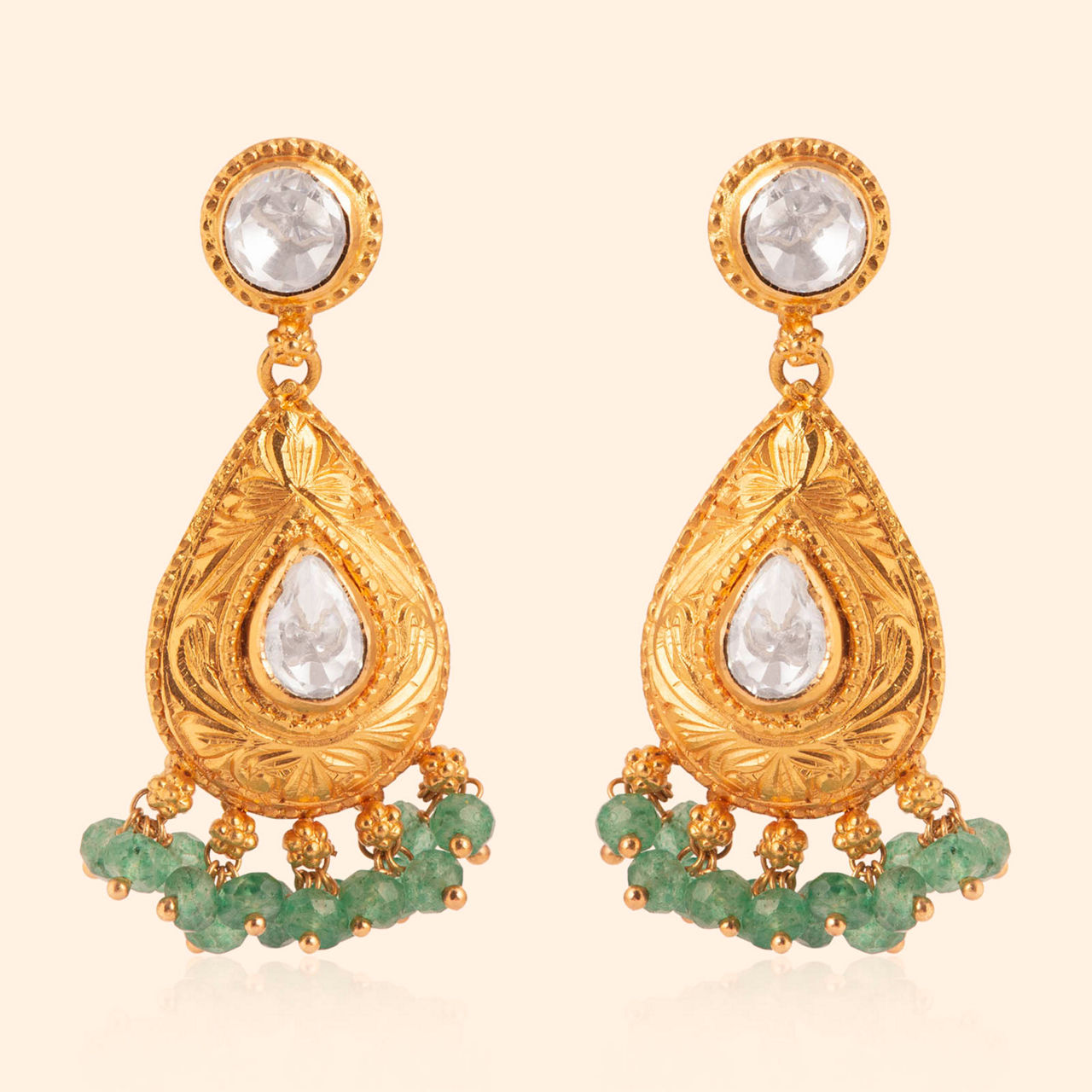 This 22KT yellow gold short neckwear, crafted with meticulous Nakashi artistry, captures the essence of divine blessings. Adorned with glass kundan and gemstones in red and pearl, its design invokes the spirit of Lord Ganesha, infusing both modern sophistication and traditional reverence. The standard antique finish enhances its timeless allure, making it the perfect addition to light occasion wear, where spirituality meets elegance.