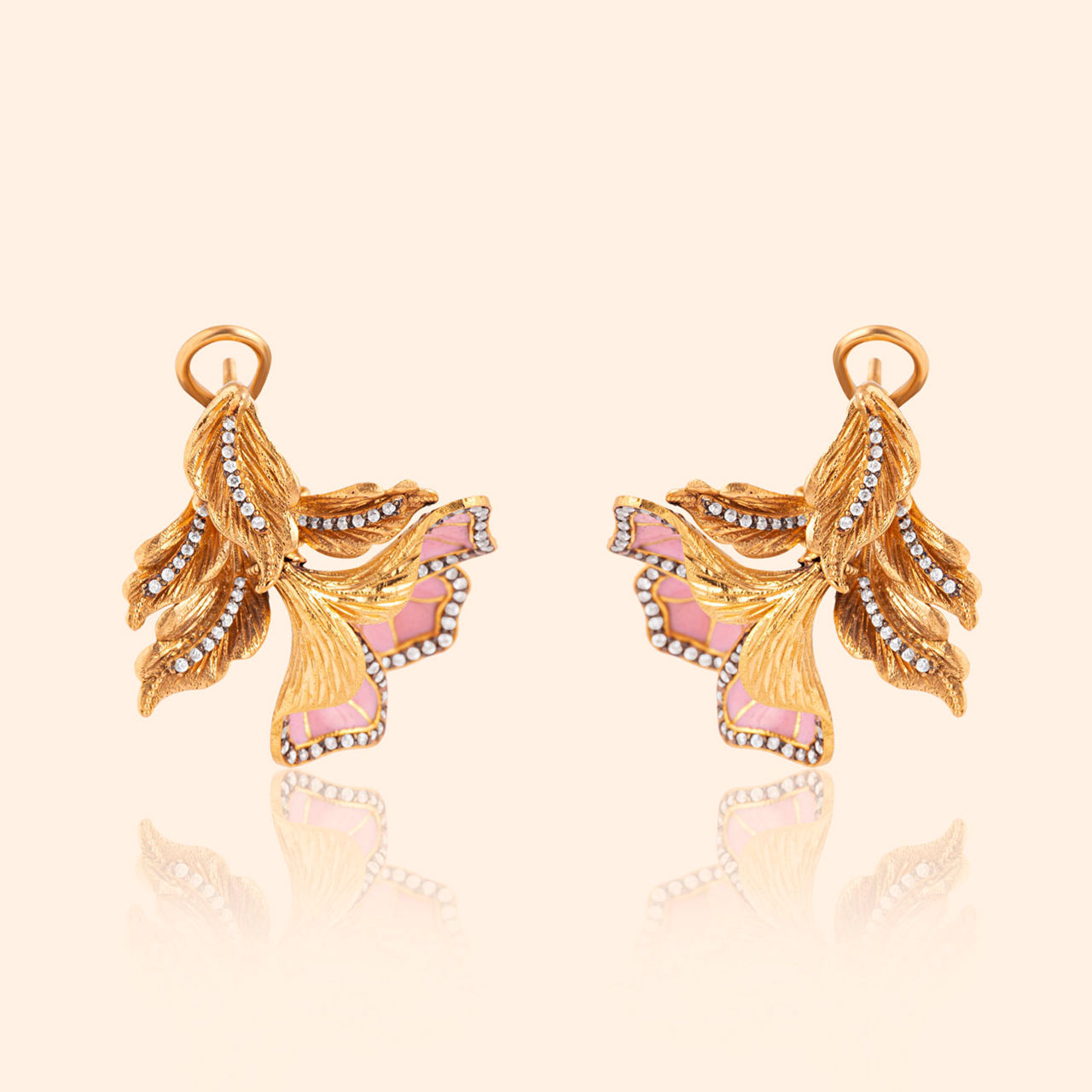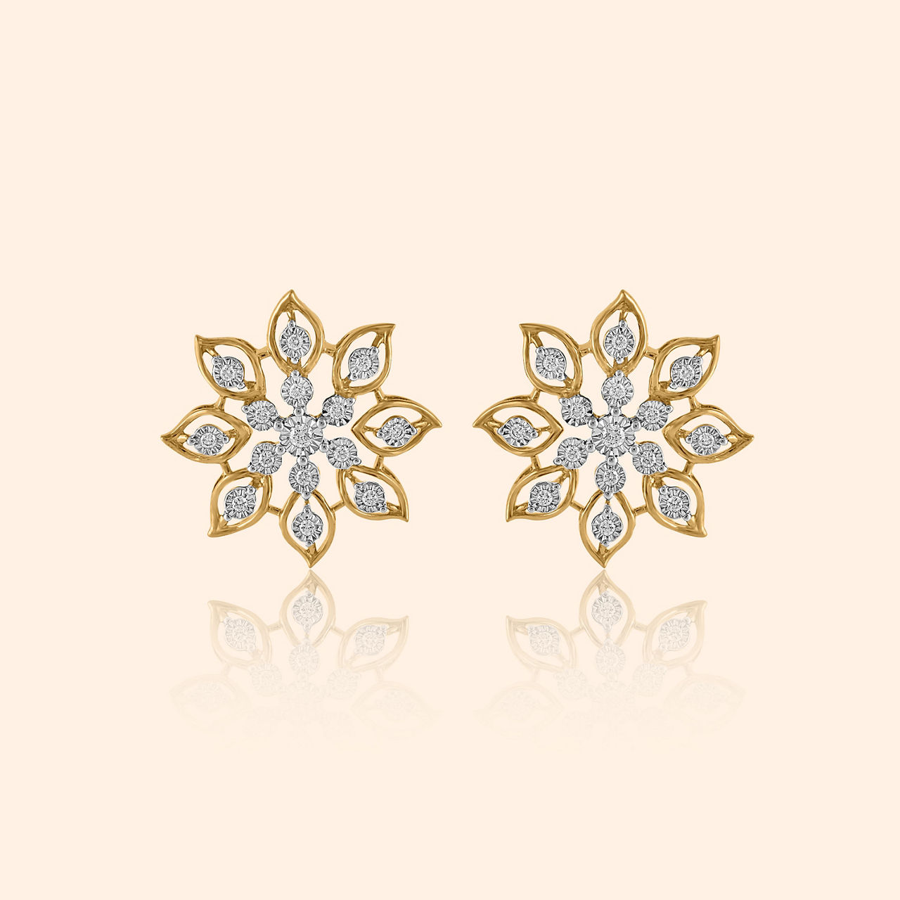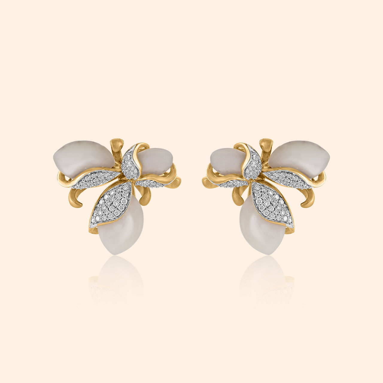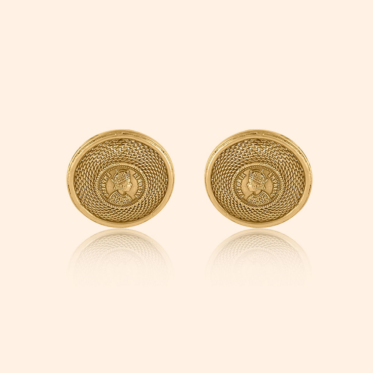 These 22KT yellow gold stud earrings blend ethno-contemporary design with the fluidity of abstract artistry. Adorned with delicate glass kundan stones, they offer a sophisticated yet modern aesthetic, perfect for light occasion wear. Their understated elegance makes them a versatile choice for both casual gatherings and more refined events, adding a touch of unique charm to any ensemble. These studs bring together contemporary flair with traditional craftsmanship, ideal for the woman who values both subtlety and style.