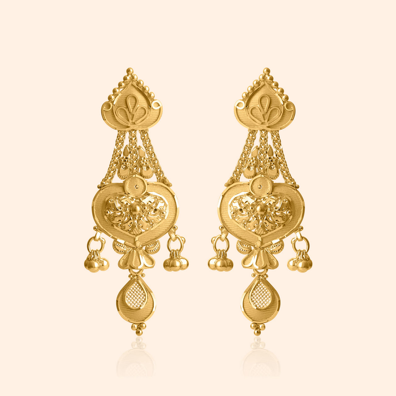 A charming reflection of cultural tradition, this pendant draws inspiration from the classic dholna motif celebrated in regional jewellery. Crafted in 18KT yellow gold with a smooth yellow finish, the design showcases graceful detailing that highlights timeless craftsmanship. The Bhrivaya Gold Dholna Pendant is perfect for daily wear, adding a subtle yet meaningful golden accent that beautifully complements both traditional attire and contemporary everyday looks.