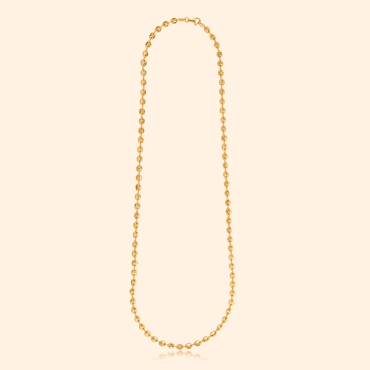 These 18kt white and pink gold handmade chains are designed for daily wear essentials, featuring a geometric pattern that combines strength and sophistication. Their seamless blend of delicate pink and white hues adds a refined touch to your everyday ensemble, making them a versatile addition to your collection. Timeless elegance in every curve, strength in every turn. Crafted with care, these chains shine like stars in a twilight sky.