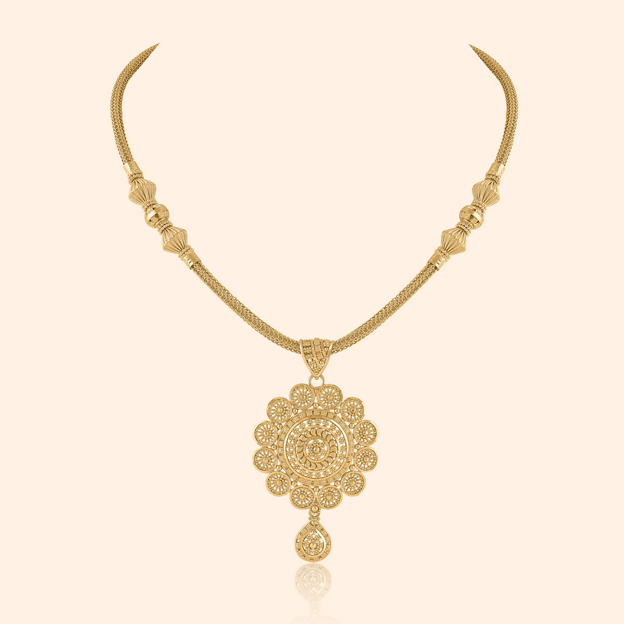 A gentle touch of morning dew, soft yet enduring, whispers of timeless grace. The Eternal Grace Floral Drop Earrings in 22kt yellow gold blend traditional craftsmanship with a touch of light occasion wear. These handmade creations radiate beauty and charm, making every day an occasion to celebrate.