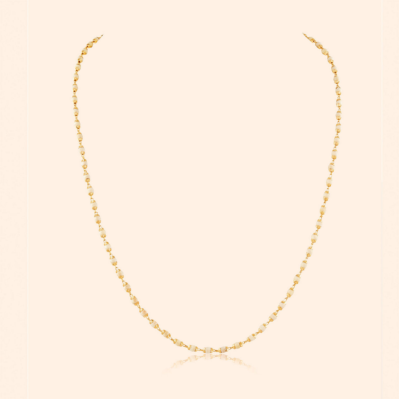 Like stars aligned, each link is placed, with precision and grace in every space. Crafted in 22kt yellow gold, this regional chain embraces modern geometry. This jewellery is not just an accessory; it's a work of art, reflecting the beauty of skilled craftsmanship. This masterpiece transcends trends, capturing the essence of enduring sophistication. Its sleek design is perfect for daily wear, offering an effortless touch of sophistication to your everyday wardrobe.