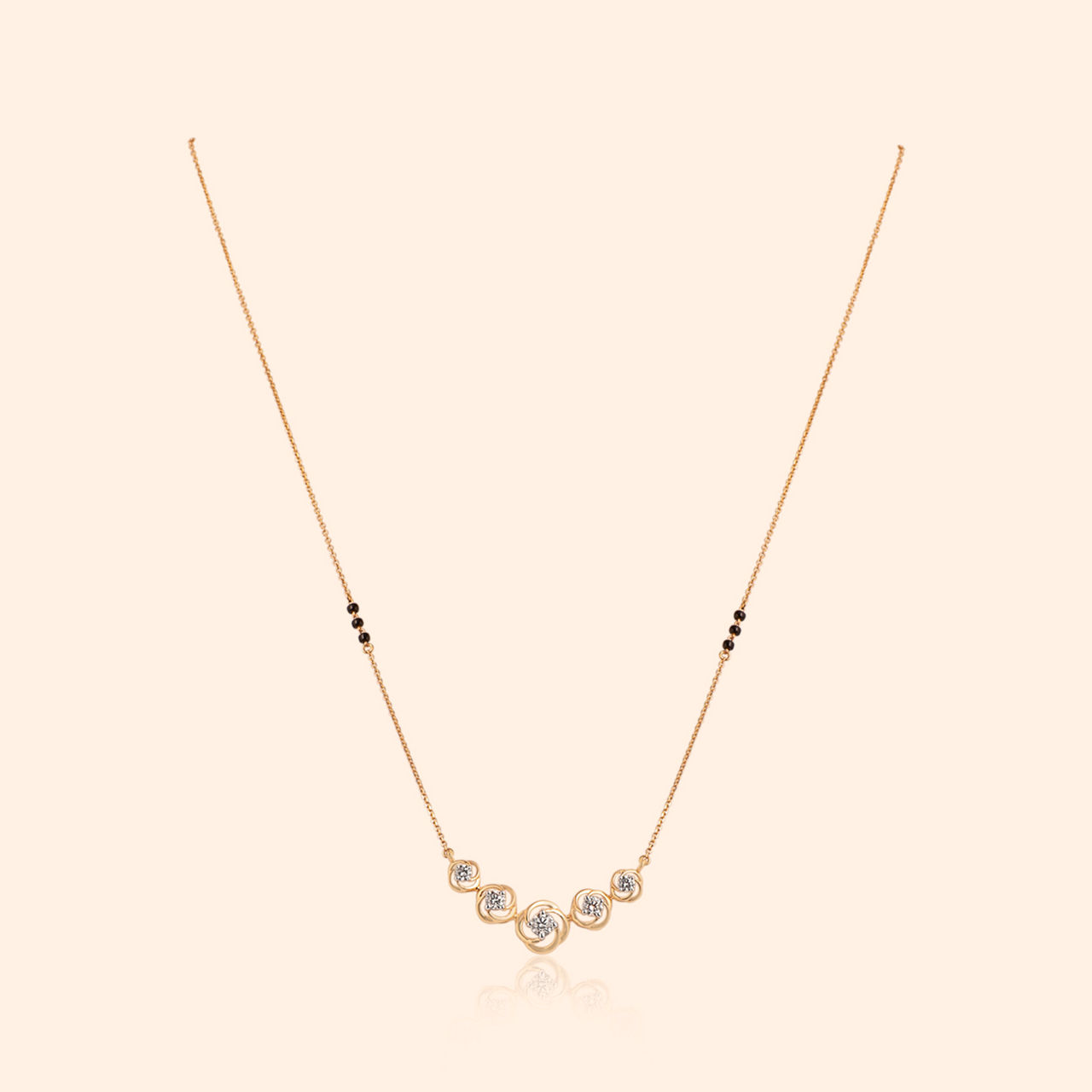 Divine sweet melody seems held within this sacred, antique thread, where faith brings grace and offers deep protection from all dread. This unique mangalsutra features an intricately detailed pendant depicting a beloved deity, Lord Krishna playing his flute, rendered with a beautiful antique finish that highlights the craftsmanship. The pendant includes a delicate drop element, suspended from a traditional chain of black and gold beads. This piece is a profound symbol of faith and love, crafted with reverence in 22 karat yellow gold.