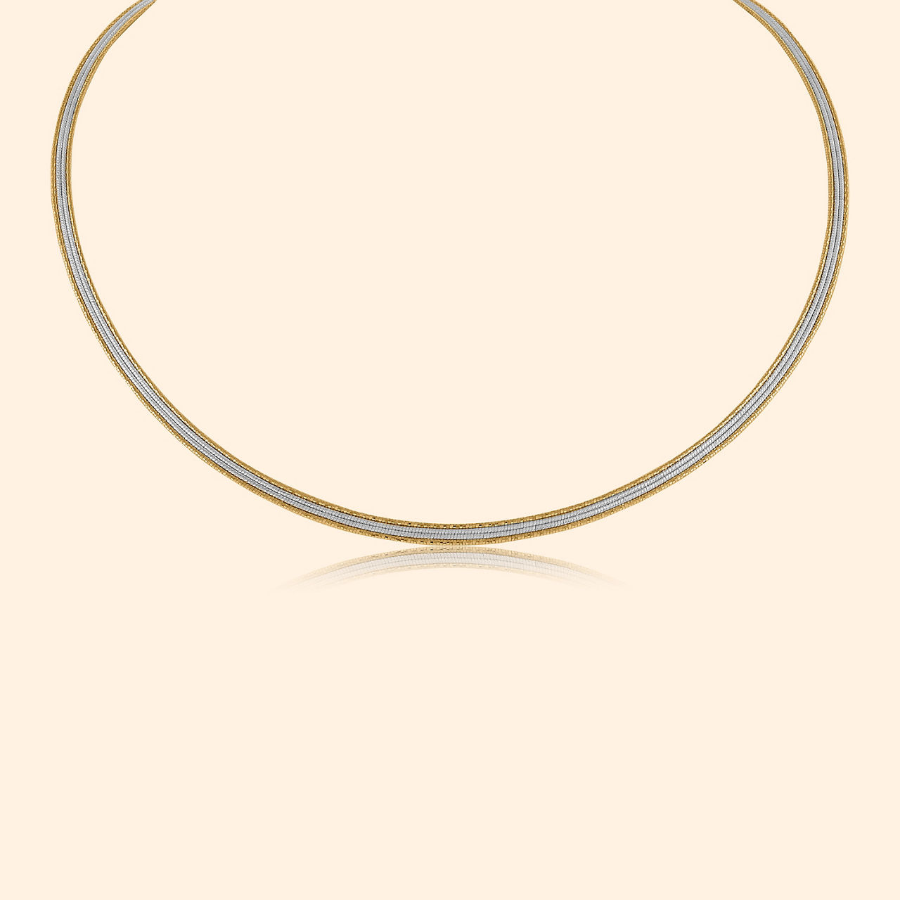 This 18kt gold chain, blending yellow and white gold, features a sleek geometric design. A versatile piece perfect for daily elegance and sophistication.