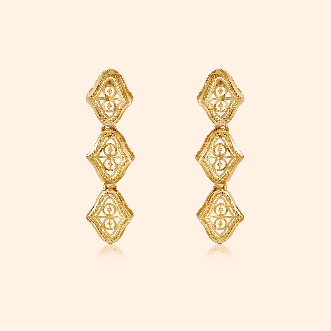A cascade of light, a radiant dream. Embrace the radiance within with the Lustre Gold Necklace. Delicate, 18kt gold diamond-like shapes shimmer with intricate details, catching the light and adorning your neckline in a cascade of high-shine brilliance. This exquisite necklace is a testament to timeless elegance.
