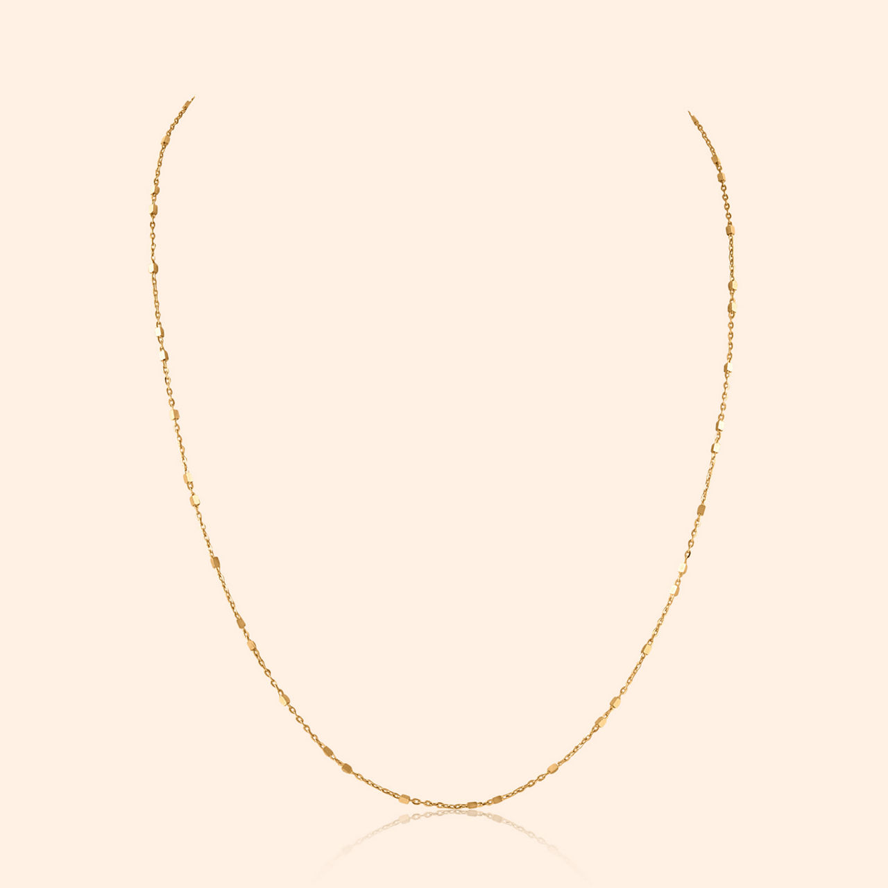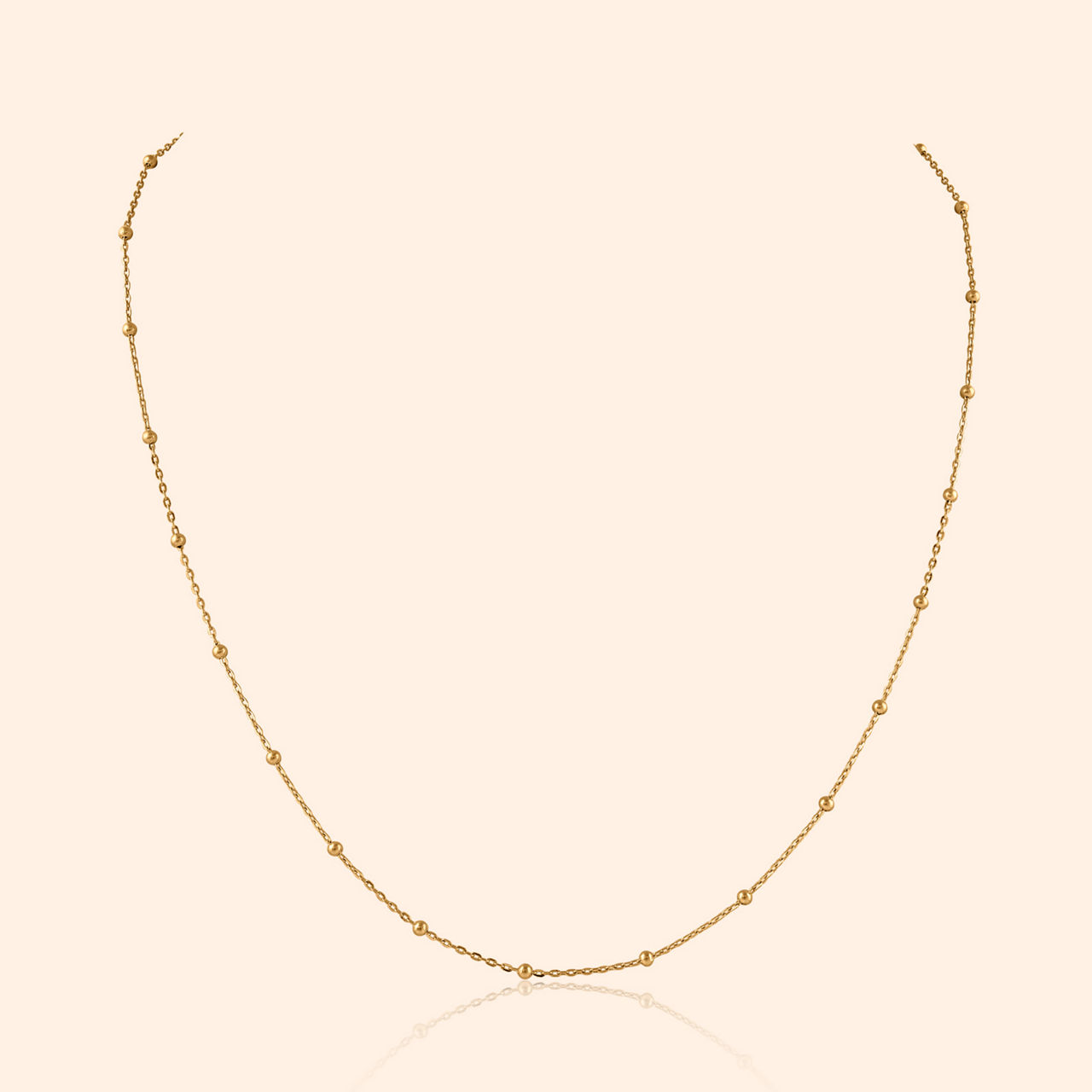 Sacred beads in a golden line, symbol deep of love divine, thread of union will entwine. This elegant chain features a classic arrangement of plain beads interspersed with finely crafted golden beads, offering subtle texture and shine. The design focuses on the traditional charm of the chain itself, presenting a pure and understated form perfect for daily wear. Its simplicity speaks volumes, representing enduring beauty. Beautifully crafted from traditional 22 karat gold, it offers timeless grace and meaning.