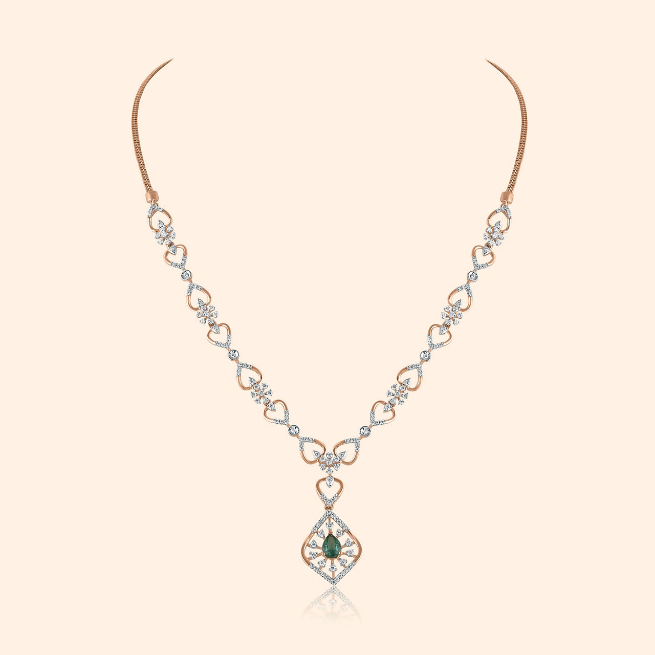 The Maris Studded-DIS Drop Earrings combine style and sophistication. Crafted in 18KT pink gold, they feature a delicate leaf design, beautifully set with high-quality diamonds for a dazzling sparkle. Comfortable to wear, these earrings have a polished finish that enhances their shine. Perfect for adding elegance to special occasions or elevating everyday outfits, they make a thoughtful gift for someone special. A timeless piece that blends contemporary design with classic charm, it's sure to enhance any jewellery collection.