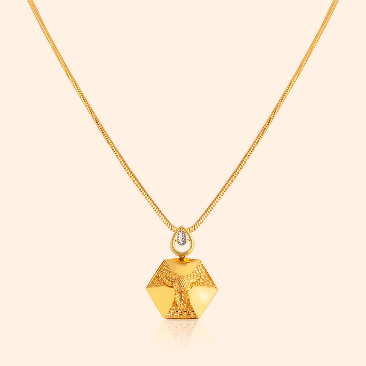 These 22 Karat yellow gold earrings, featuring a contemporary floral design within a hexagonal shape, are ideal for daily wear essentials. Their unique silhouette and brilliant shine bring a refreshing touch to your jewelry collection.