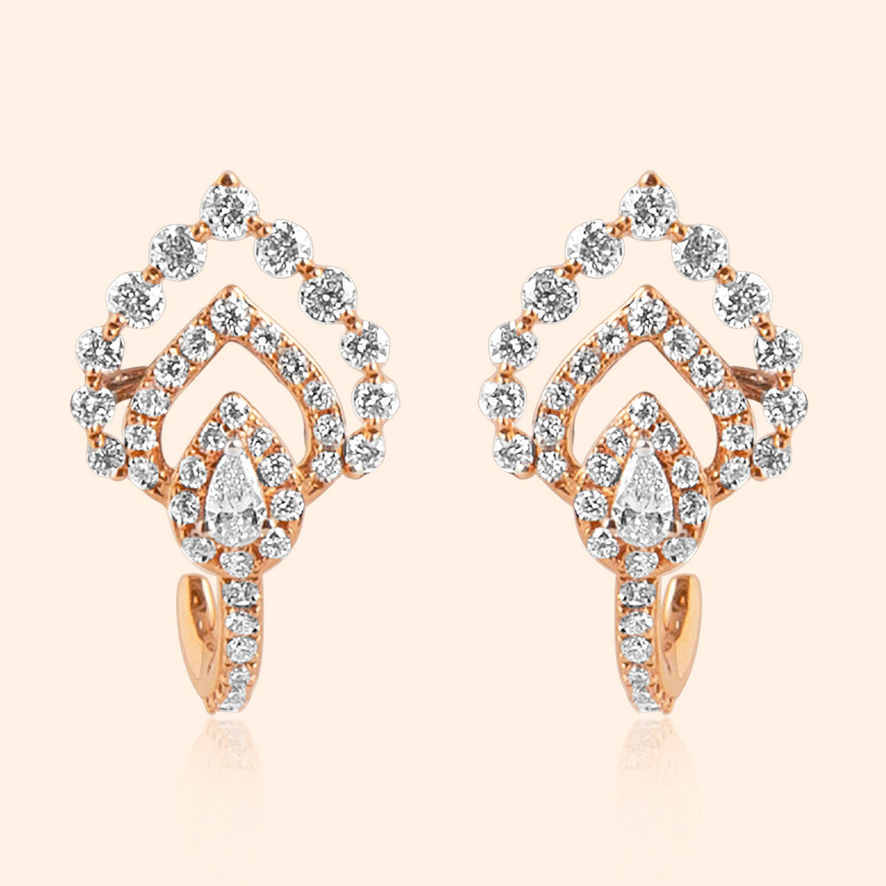 Designed in 18karat pink gold, these hoop earrings celebrate modern sophistication. Featuring a pear-inspired silhouette and accented with tapered baguette-cut diamonds, they create a captivating interplay of shape and sparkle. The high shine finish finish lends a radiant glow, making these hoops a versatile choice for daily wear or elevating special occasions. Perfect for women who appreciate a balance of understated richness and contemporary style.