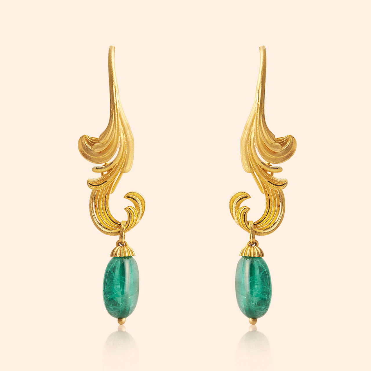 Echoes of symmetry move through space, capturing an effortless cadence that feels natural yet intentional. Crafted in 18KT yellow gold, these Olivara Diamond Drop Earrings blend high and matte polish for a balanced, tactile surface. Ethno-contemporary floral motifs are accentuated with sparkling diamonds and gemstones, adding subtle brilliance and depth. The gemstones are thoughtfully integrated to enhance the warmth of the metal, while the drop form ensures graceful movement. The composition draws the elements together seamlessly, reflecting a unique blend of modernity and intricate craftsmanship.