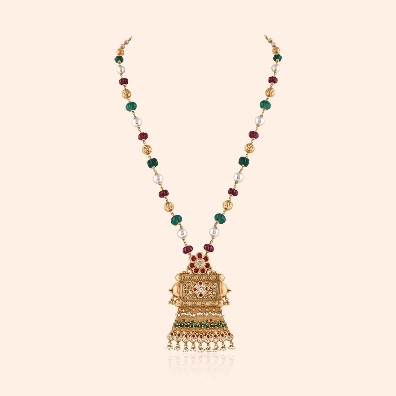 A refined display of heritage and artistry, these 22KT yellow gold drop earrings capture the balance between floral inspiration and geometric symmetry. Accented with carefully chosen stones, the design gains depth and richness, while the standard antique finish enhances its traditional character. Made for heavy occasions, their elevated form rests gracefully in harmony with fine detailing. Crafted with precision and thought, this pair expresses a timeless sensibility that unites ornamental beauty with cultural resonance across generations.