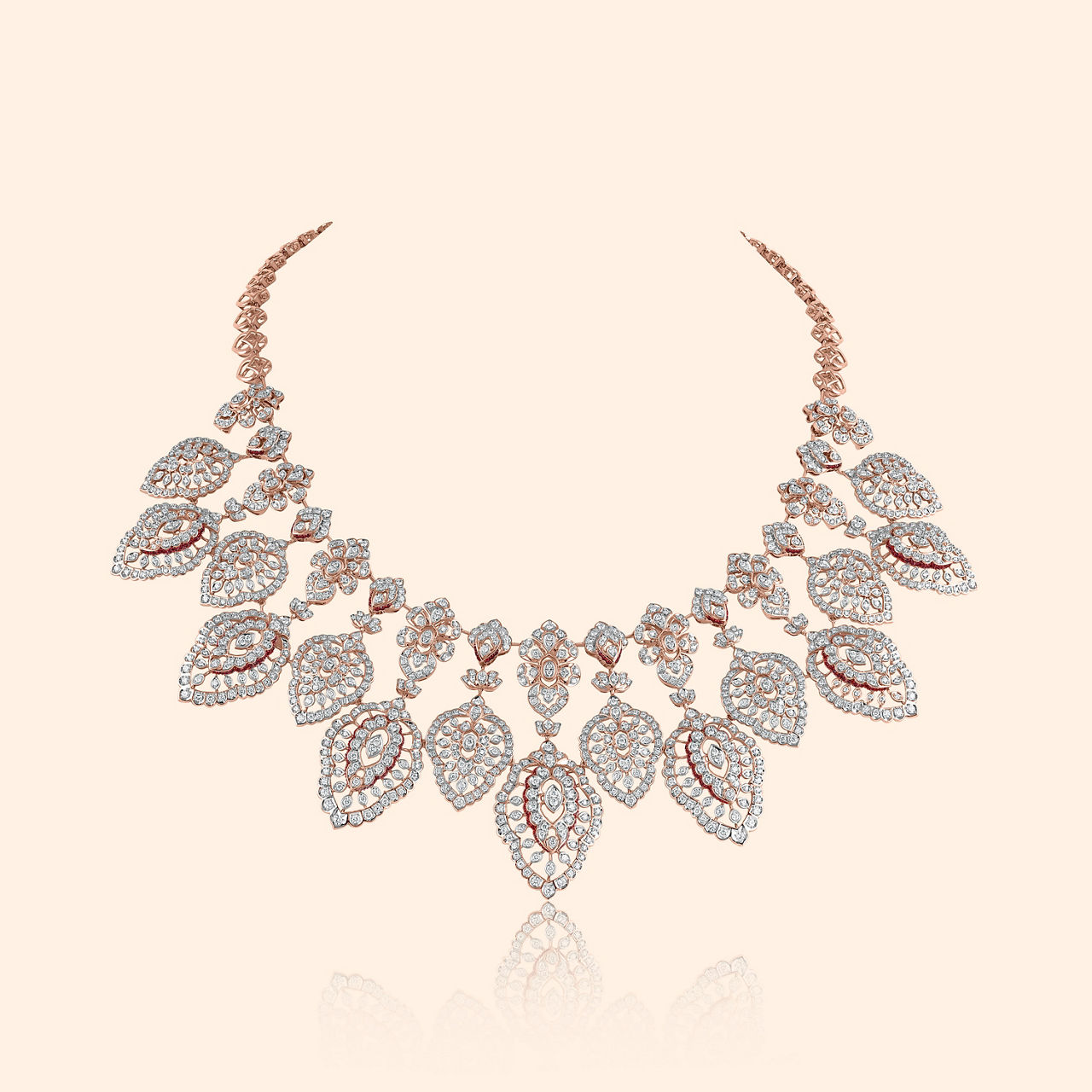 In rose gold's embrace, a vibrant ember glows, where brilliant diamonds whisper tales it knows. Crafted from lustrous 14KT rose gold, these exquisite drop earrings are polished to a brilliant gleam, showcasing a harmonious blend of modern design and a classic floral motif. Each piece features a captivating display of dazzling diamonds, artfully set around a vibrant red gemstone at its heart, adding a rich depth of color. Designed for grand celebrations, these earrings are perfect for heavy occasion wear, destined to adorn your most cherished lehengas or heavy silk sarees. Let these magnificent creations illuminate your presence.