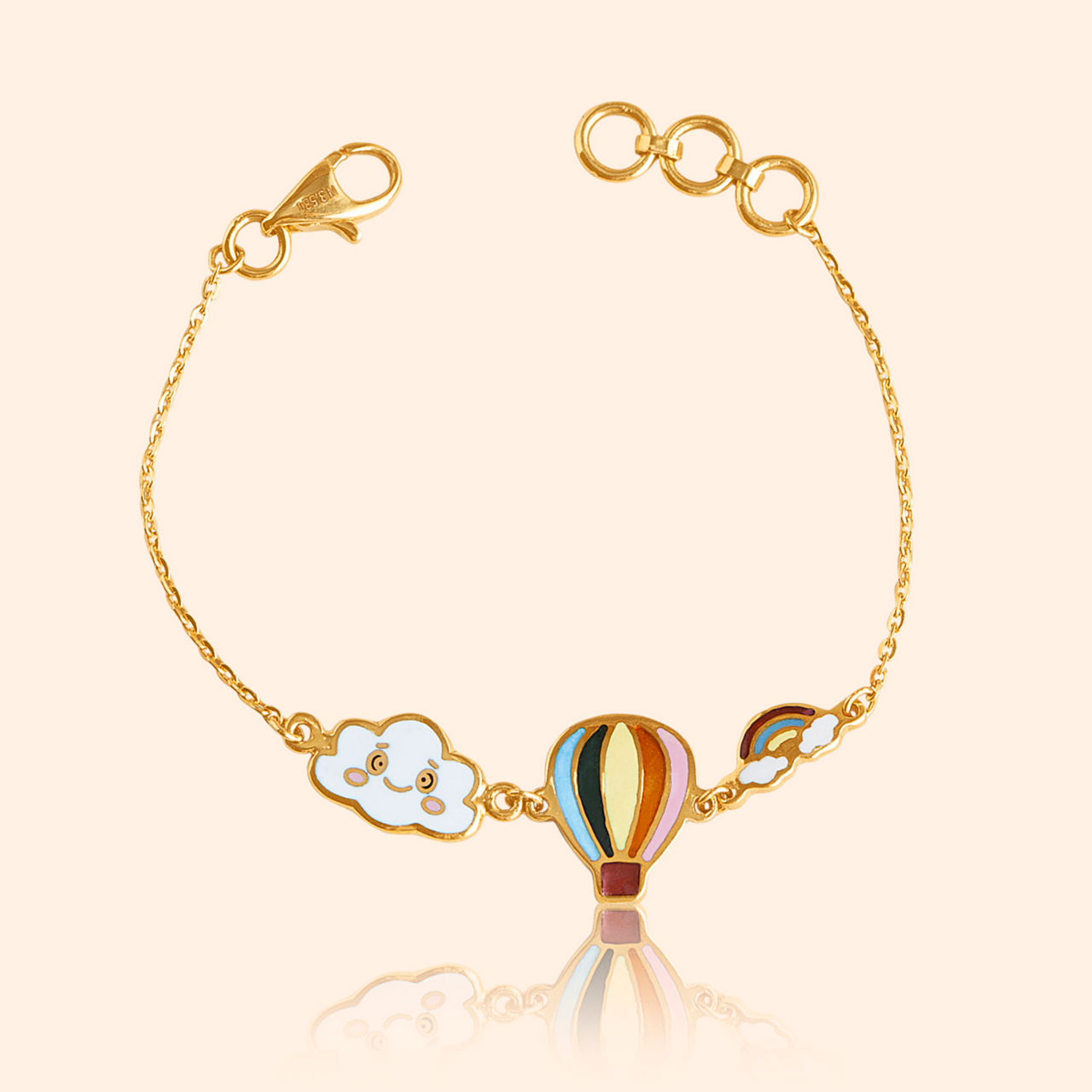A modern pentagon motif gives this kids’ bracelet a playful yet contemporary character suited for elevated everyday wear. Styled in 22KT yellow gold, the sleek form is finished with a high-polish sheen that highlights the metal’s natural warmth and brightness. Subtle synthetic accents add a touch of visual interest while keeping the design lightweight and comfortable. Thoughtfully sized for little wrists, the Pentilo Gold Kids Bracelet pairs effortlessly with daily outfits and special moments alike.