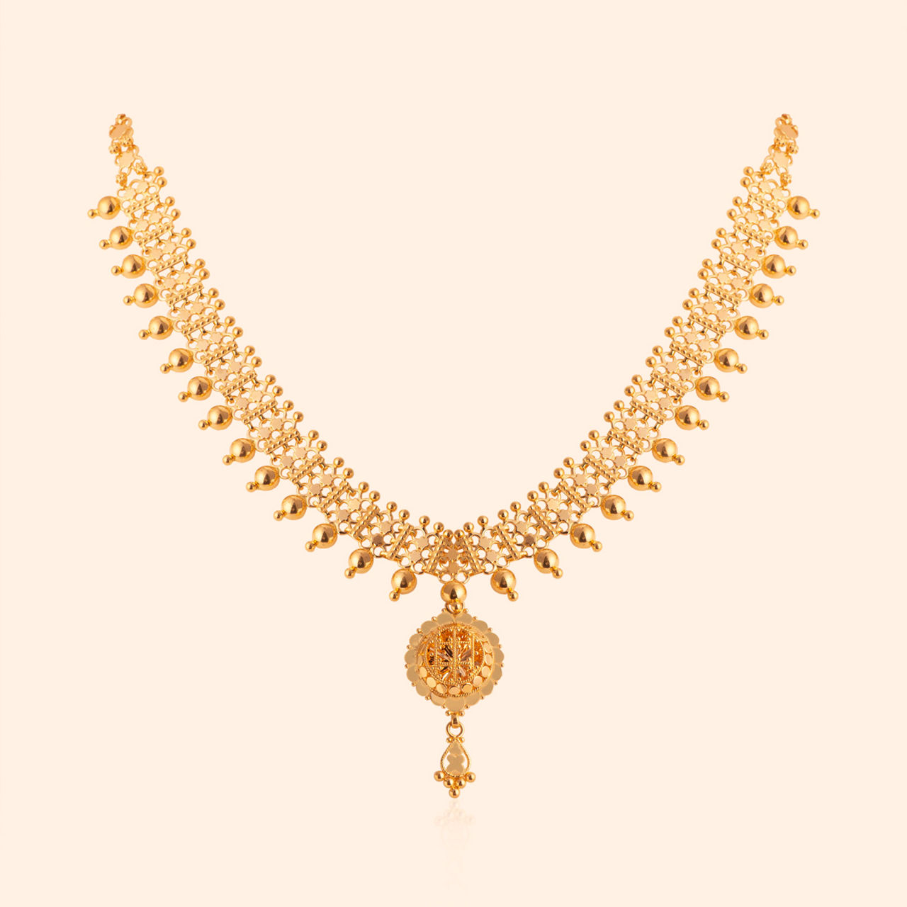 A graceful echo of heritage and form, these 22KT yellow gold drop earrings bring traditional geometry to life with effortless charm. The design flows with clean lines and subtle curves, creating a structured yet delicate silhouette that complements festive and intimate occasions alike. Their lightweight nature offers comfort without compromising presence, while the warm yellow finish adds a soft glow to every ensemble. Thoughtfully crafted, they reflect the elegance of timeless traditions in a refreshingly refined way.