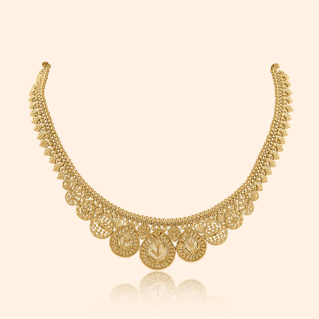 Regal drops hold stories deep, promises that traditions keep, gleaming with patterns intricate and fine, a truly divine design. These earrings feature a sophisticated pear-shaped stud detailed with exquisite filigree work and delicate bead borders, leading to a spherical dangling element that adds a playful yet elegant touch. They represent an elevated traditional aesthetic, ideal for heavy occasion wear where grace and grandeur are desired. Meticulously crafted, this pair shines brilliantly in pure 22 karat yellow gold.