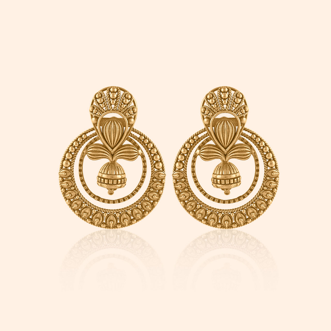 Graceful movement and understated elegance define this refined pair, designed to complement everyday traditional styling with ease. Crafted in radiant 22KT yellow gold with a smooth yellow finish, the earrings feature a flowing drop silhouette that adds gentle charm without overwhelming the look. At the centre of this timeless design are the Ruvina Gold Drop Earrings, thoughtfully created for daily wear essentials. Their elegant simplicity makes them a versatile choice for pairing with both ethnic outfits and contemporary attire.