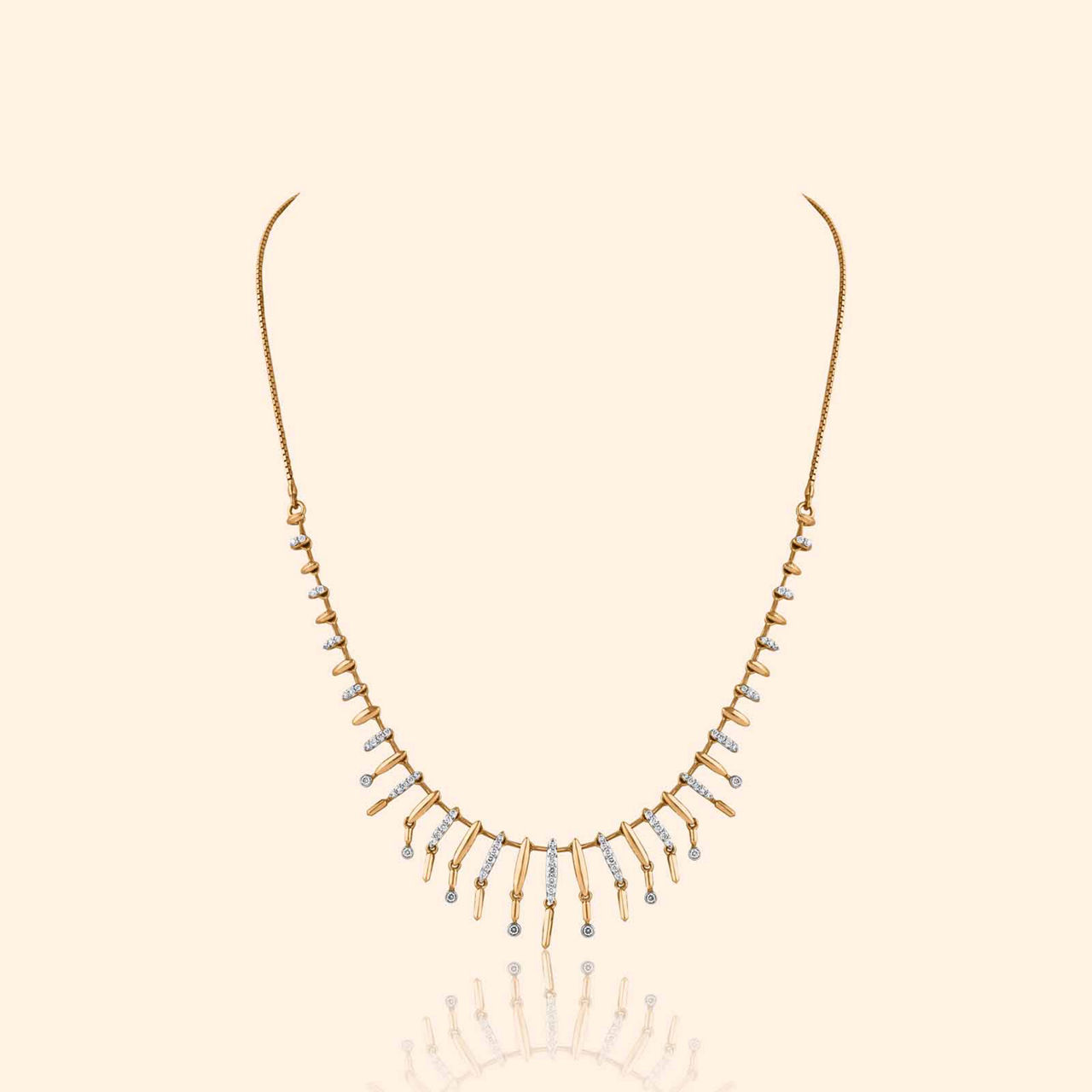 Beats of rhythm flow through silent lines, where form and light quietly meet. Sharv Diamond Stud Earrings are crafted in 18KT yellow gold with a high polish that enhances their geometric motif. The studs carry an elegant structure that feels graceful and contemporary, making them suitable for regular wear. Diamonds add gentle brilliance that completes the look without excess. The design shows fine attention to shape and finish, presenting a creation where proportion, polish, and detail come together in harmony.