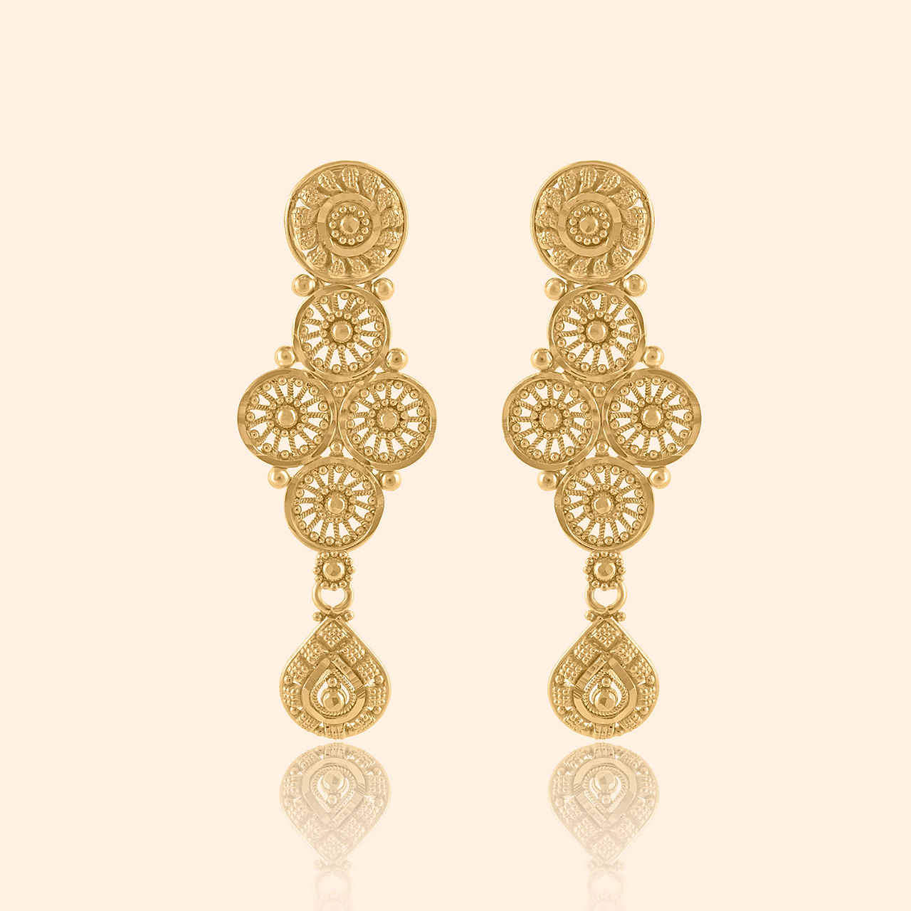 This 22k yellow gold necklace, designed for subtle wear, features an elevated floral design that enhances classic beauty with a modern touch. Its intricate craftsmanship and timeless style create a piece that beautifully merges traditional charm with refined sophistication.