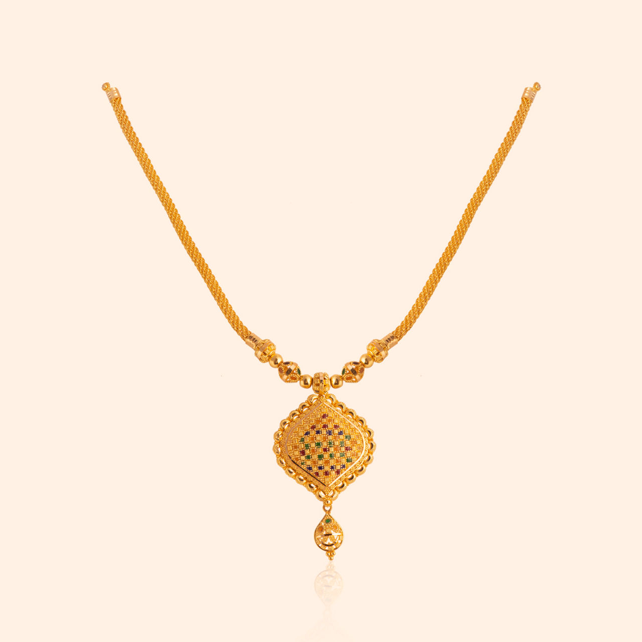 Celebrate tradition with a contemporary twist in these 22 karat yellow gold drop earrings. Handcrafted to perfection, their geometric design exudes elegance and precision. The yellow finish highlights the purity of gold, making them a versatile choice for light occasion wear. Reflecting elevated traditional craftsmanship, these earrings are ideal for women who appreciate timeless artistry. Each curve and line narrates a tale of beauty, blending heritage with modern sophistication to create a masterpiece for your treasured moments.
