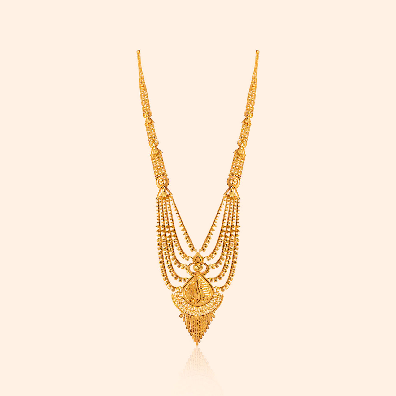 Crafted from 22KT yellow gold, these drop earrings exude a quiet sophistication with their pear-shaped design. The smooth yellow finish enhances their classic charm, making them an ideal addition for heavy occasion wear. The simplicity of the design, combined with the richness of the gold, ensures they complement a range of formal and ceremonial looks. These earrings are the epitome of understated beauty, offering a timeless statement that speaks volumes without saying a word.