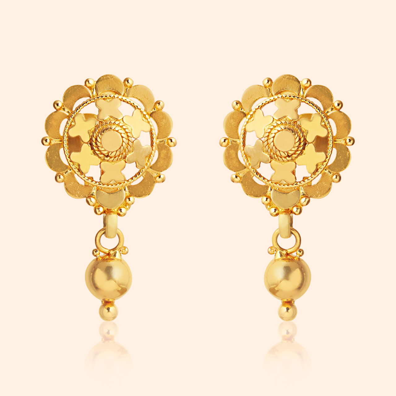 A delicate chain adorned with golden spheres culminates in a radiant medallion; this necklace speaks softly of timeless traditions and enduring grace meant for cherished moments. The necklace features a strand of evenly spaced golden beads leading to a central circular pendant. The pendant element showcases intricate filigree work surrounding a smaller central motif, with a single bead drop adding a subtle finish. This is a classic piece embodying understated traditional elegance, crafted in 22 karat yellow gold.