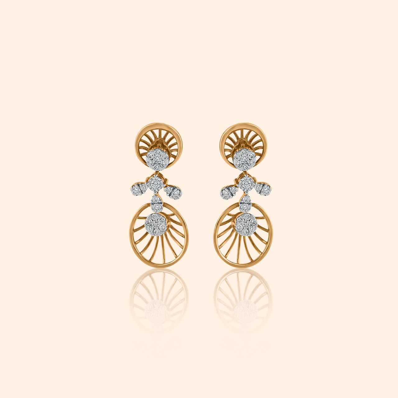 Golden sunbeams held in form so bright, with diamond sparks that dance reflecting wondrous light. This necklace presents a modern interpretation of celestial radiance, designed for elevated essential style. Delicate, openwork fan or shell-like motifs, studded with diamonds, form the elegant chain leading to a striking central pendant. This pendant features a larger, intricate circular design with radiating lines and brilliant diamond accents, mimicking a sunburst. This captivating piece is expertly crafted from glowing 18 karat yellow gold.