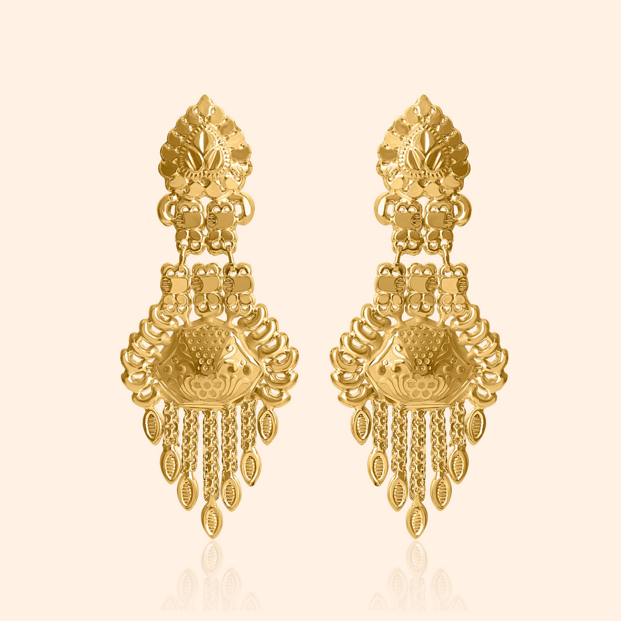 Rooted in regional heritage, this pendant celebrates the timeless charm of the traditional dholna motif. Crafted in 18KT yellow gold with a smooth yellow finish, the design reflects delicate craftsmanship and cultural elegance. The Tilvaya Gold Dholna Pendant is perfect for daily wear, adding a subtle golden accent that beautifully complements both ethnic attire and contemporary everyday styling.
