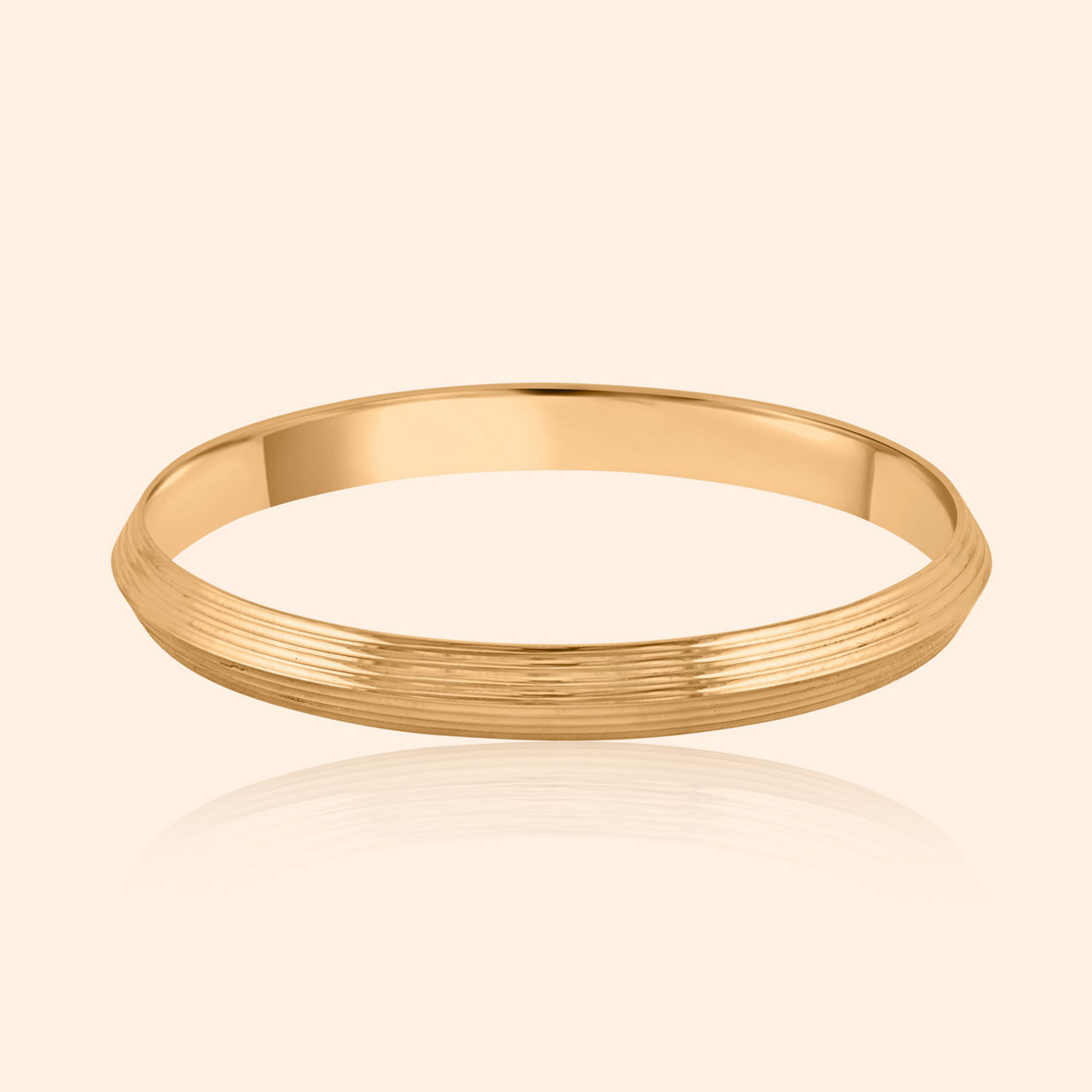 Bold presence meets refined artistry bright, this gent’s kada speaks of strength, gleaming with dual-toned golden light. This gold kada presents a commanding profile, featuring a broad band crafted in yellow gold with a distinctive contrasting white gold textured inlay running through the center. The edges are smoothly beveled, ensuring a comfortable fit while projecting confident style, making it the perfect symbol of modern masculinity and elevated taste. This substantial piece is meticulously finished in robust 22 karat gold.