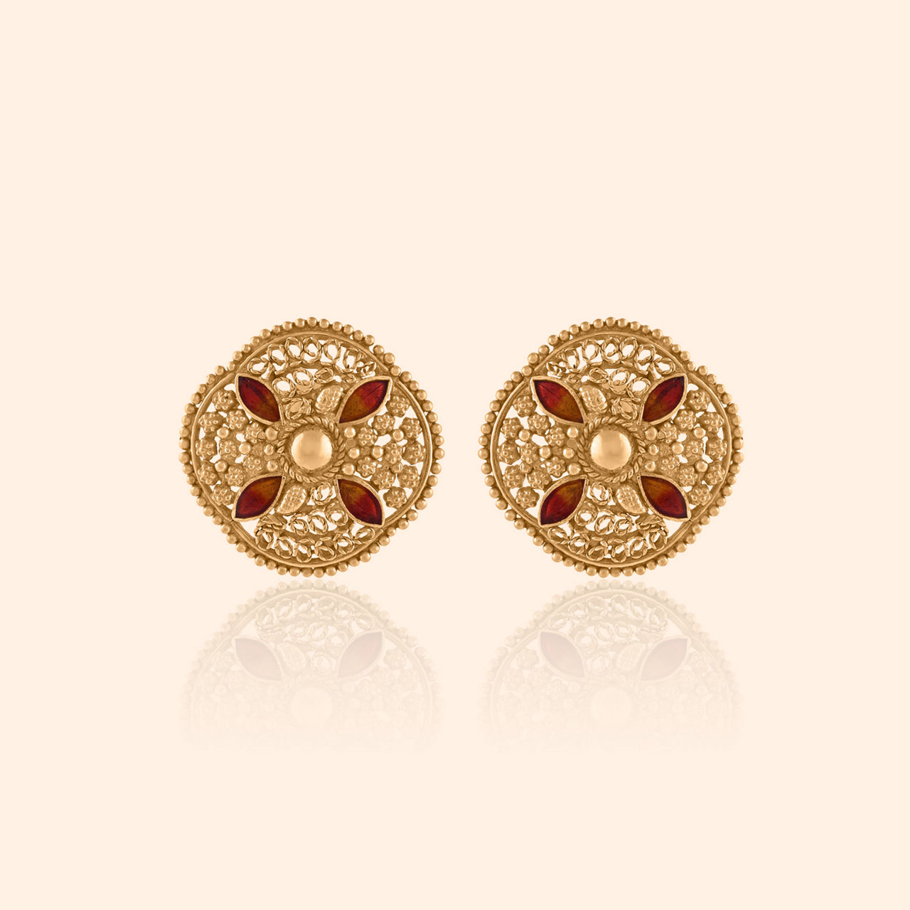 Protect your jewellery from perfume spray, moisture, liquids, and fumes, as these may react with metal and cause discoloration or tarnishing. After each wear, gently wipe the jewellery with a clean, dry cotton cloth to remove sweat or moisture. Avoid storing jewellery in velvet or wooden boxes; instead, use this plastic container with a silica gel pouch to absorb moisture and the original cotton cloth for extra protection. For long-lasting brilliance, consider periodic professional cleaning and maintenance.